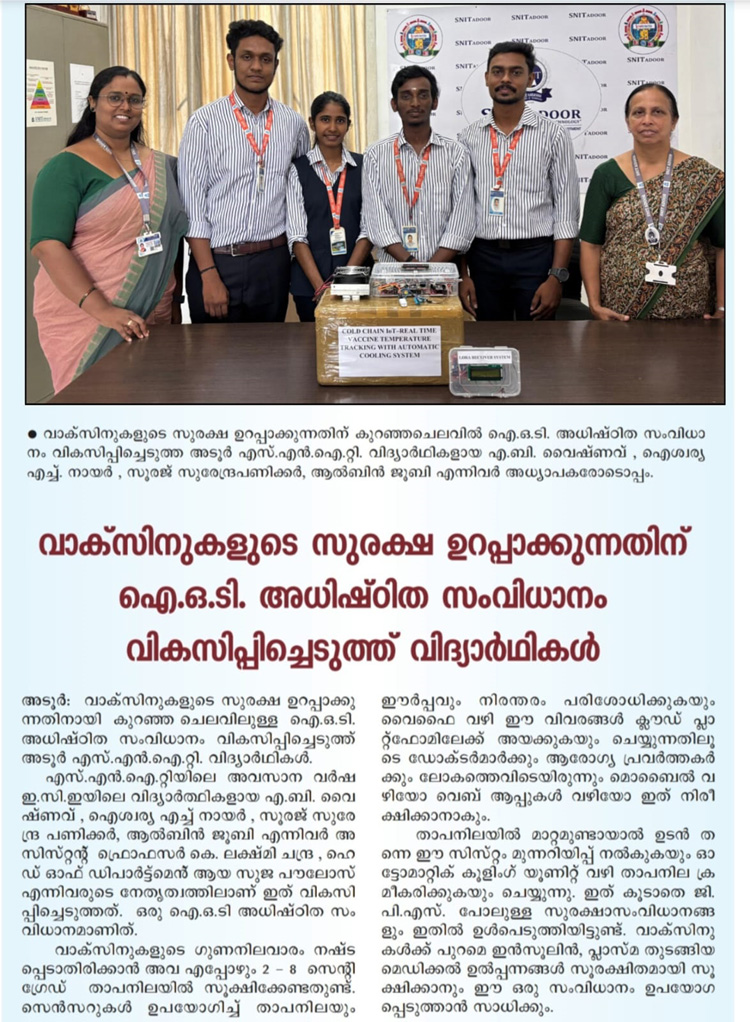 വാക്സിനുകളുടെ സുരക്ഷ ഉറപ്പാക്കുന്നതിന് ഐ.ഒ.ടി. അധിഷ്ഠിത സംവിധാനം വികസിപ്പിച്ചെടുത്ത് വിദ്യാർഥികൾ
