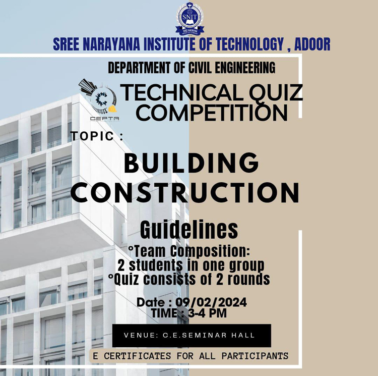 The ASCE Student Chapter of SNIT, Adoor, organized a quiz competition to celebrate Engineers Day on 15th September 2023. The program, held in the Civil Engineering seminar hall from 1:30 PM to 3:00 PM, saw enthusiastic participation from students across various engineering disciplines. The quiz covered a wide range of topics related to civil engineering, […]