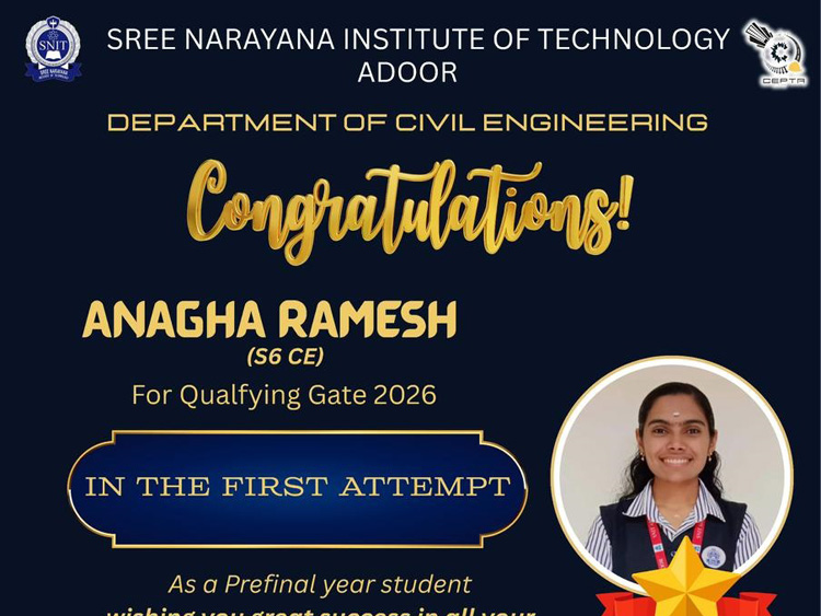 CONGRATULATIONS ANAGHA RAMESH (S6 CE) FOR QUALFYING GATE 2026