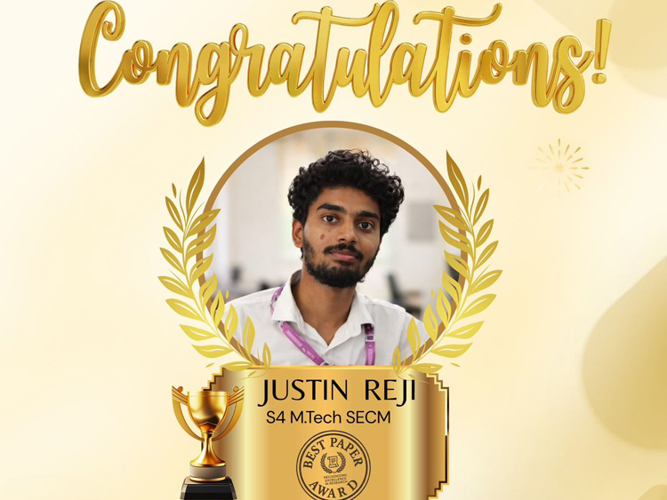 CONGRATULATIONS JUSTIN REJI S4 M.TECH SECM