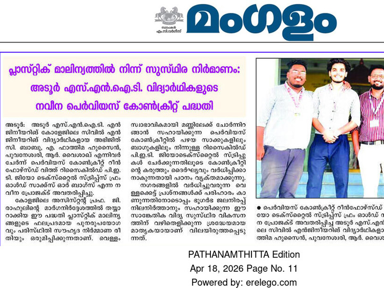 The initiative to honor Er. Abyin Ampadiyil was taken by the students as Sree Narayana Institute of Technology Adoor completed one Jupiter cycle. The journey, which began on October 6, 2011, has now been successfully completed for twelve years and still going on strongly. The SNIT Civil Engineering Association (CEPTA) presented Er. Abyin Ampadiyil, managing […]