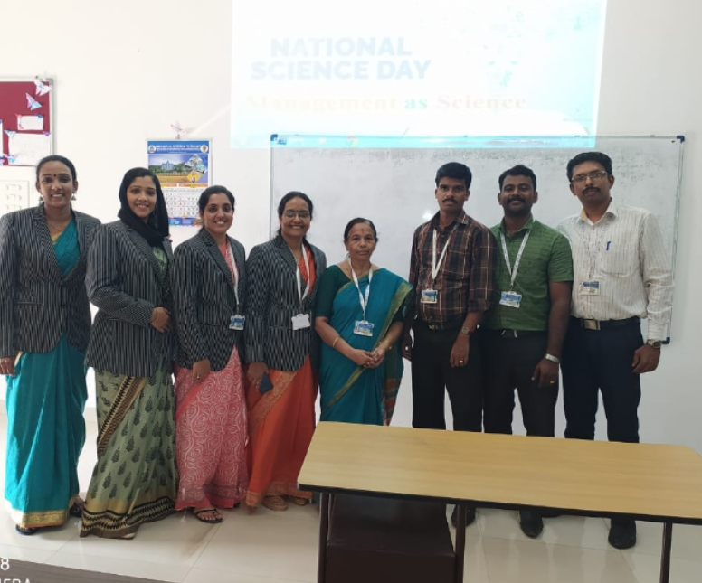 28/02/2020 Venue: MBA Classroom We celebrated International Science Day by honouring Ms Sarasvathi Amma (Assistant Professor, Basic Science Department) for her contribution to the world of science. We also portrait our thanks to Mr Rajesh (Assistant Professor, Basic Science Department) for the insightful talk on the theme “Women in Science “