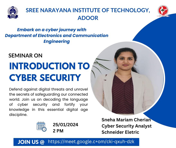 The seminar on Introduction to Cyber Security was organized by SPECTRA, the Electronics and Communication Engineering Association at Sree Narayana Institute of Technology, Adoor.